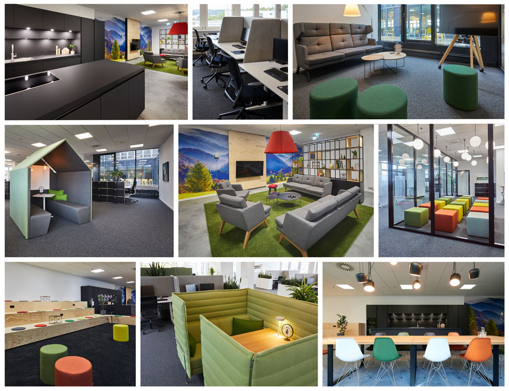 - das „Raum in Raum“-Konzept ermöglicht konzentriertes und störungsfreies Arbeiten im Großraum