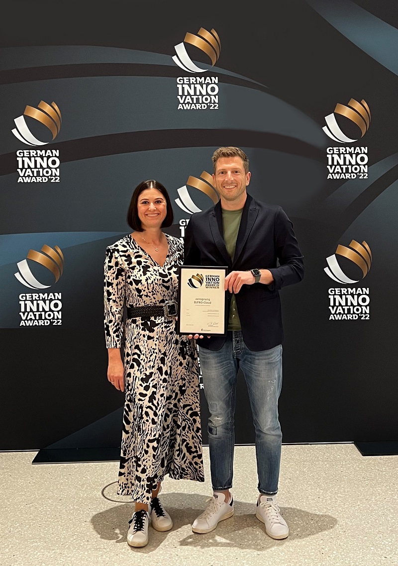 Carolin und Marcel Hanselmann sind stolz über die Auszeichnung beim German Innovation Award 2022 in Berlin.